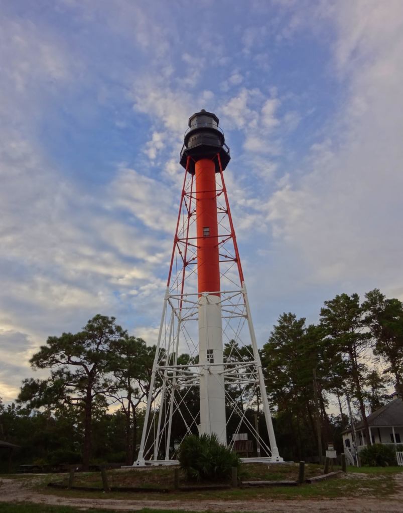 Originally painted all red, like our friends in Jupiter and Ponce de Leon Inlet, but eventually, they painted the bottom portion white to offset the tower from the surrounding pine forest, giving it the distinctive appearance you see today. We have not been to visit this lighthouse yet, but it is on our list for this upcoming year.