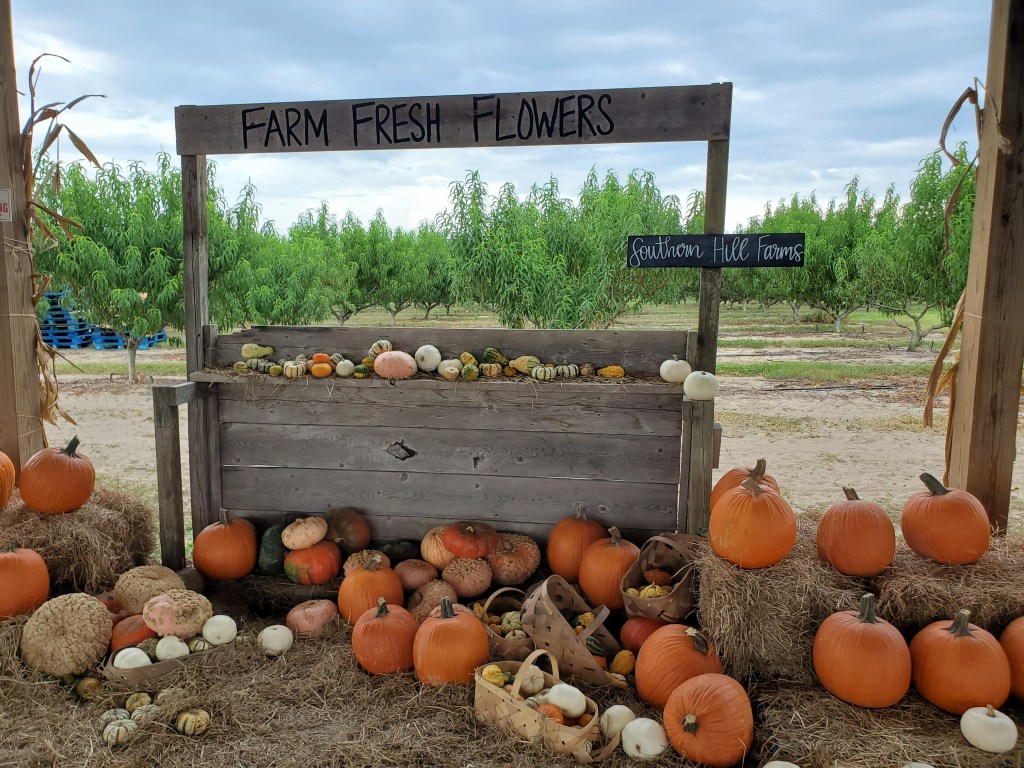This one is worth making a day trip for! Southern Hill Farms is located in Clermont, and is one of our favorite fall festivals in Central Florida! Not only is Southern Hill Farms perfect for grabbing your family pumpkin patch photos, it’s also a picturesque spot with rolling hills in the distance, and even has a sunflower field to explore.