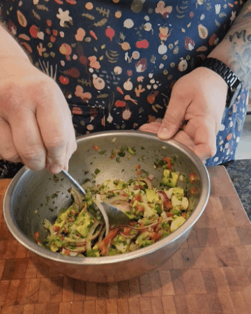 Ceviche usually gets lumped in with dishes like sushi and tuna tartare as completely raw. However ceviche is actually fully cooked. The acidity in the lime juice reacts with the fish, or scallop protein and causes it to become opaque and firm while absorbing flavor. For the scientific crowd, this is called denaturing—a process you’re probably more familiar with using heat, or traditional cooking. The reaction created makes it safe to eat for almost anyone, with a few caveats. If you are at higher risk for complications from foodborne illness, like anyone who may be pregnant or immunocompromised, you might want to skip this meal.