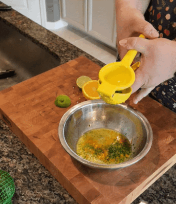 Zest both the limes and oranges into a small bowl. Juice the same limes and oranges into the same bowl to create your scallop marinade. Pour over the scallops, and let sit in the fridge for at least an hour, up to 6 hours.
