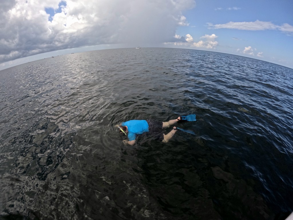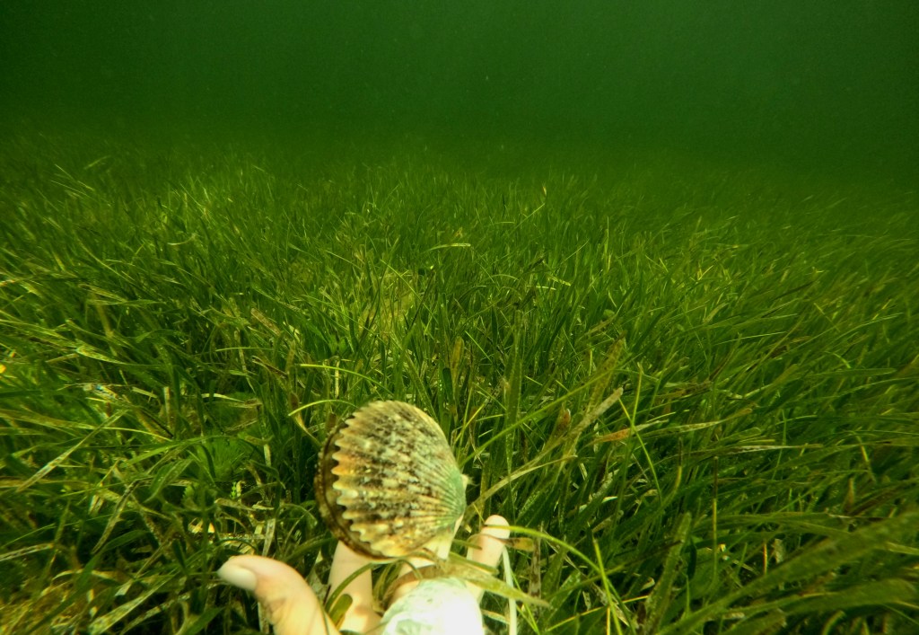 Scalloping is actually a lot like an Easter egg hut, but in the ocean and you need a snorkel. The scallops rest within the sea grass on the ocean floor, and you dive down to scoop them up. Typically earlier in the season is most fruitful, as you get closer to the end of season, you might have to hunt a little bit harder. We didn’t end up with a huge haul, but honestly we were both fine with that, it was really more about the experience.