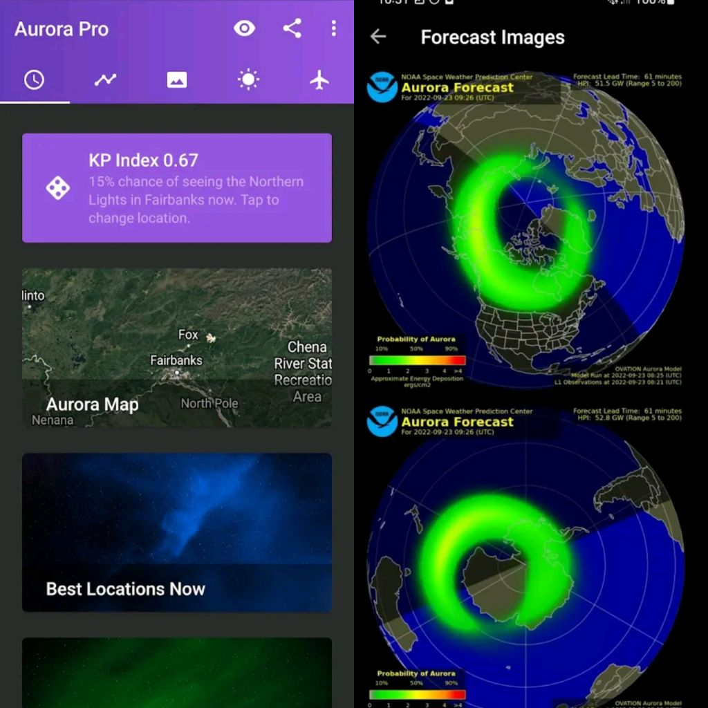 The worst possible feeling is hearing others in your hotel lobby talk about the amazing lights they saw last night, while you just comfortably slept the night away. Download a couple of different weather and aurora predictors. That way, you can set notification alerts so you don’t miss any shows. It is also important to monitor the weather forecasts, as clear skies are essential for a successful Aurora sighting. Cloudy weather can obstruct the view, so it’s important to be flexible with your location scouting and timing.