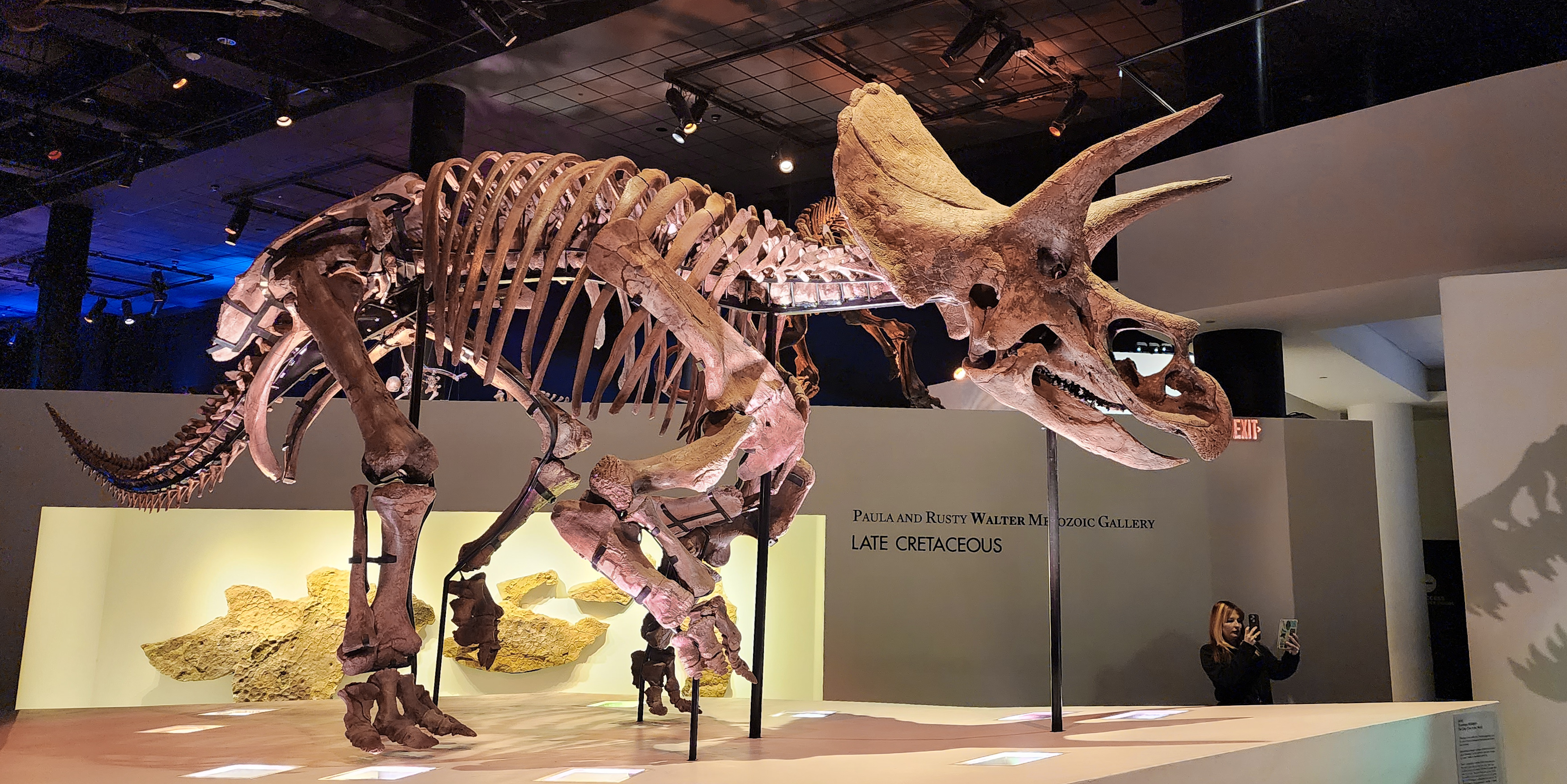 When we entered the Morian Hall of Paleontology where met with a docent who gave an introduction to the different specimens they had. He even helped us identify which fossils were real, and which were replicas, by looking for the ones with additional supports. The most celebrated specimen here is the Triceratops, which is the most intact Triceratops skeletons ever discovered.